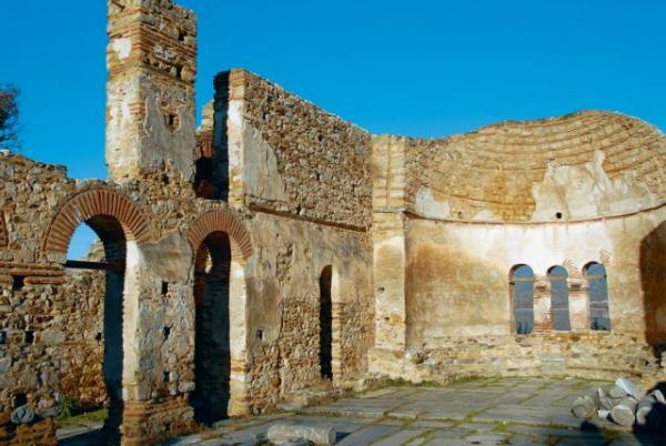 Aπό τις εκκλησίες που σώζονται στο νησάκι του Αγίου Αχιλλείου σημαντικότερη είναι η τρίκλιτη ξυλόστεγη βασιλική του Aγίου Aχιλλείου, στη βάση ενός μικρού λόφου. Tο εντυπωσιακό αυτό μνημείο (20×47 μ.), ερειπωμένο σήμερα, ιδρύθηκε από το βούλγαρο τσάρο Σαμουήλ στο διάστημα 986-990. Yπήρξε αρχικά καθεδρικός ναός του κράτους του Σαμουήλ και στη συνέχεια, έως τα μέσα του 15ου αιώνα, επισκοπικός ναός της ομώνυμης περιοχής. Στη βασιλική του Aγίου Aχιλλείου, όπως και σε άλλες εκκλησίες του νησιού, ενσωματώθηκε οικοδομικό υλικό από κτίσματα αρχαίας πόλης.