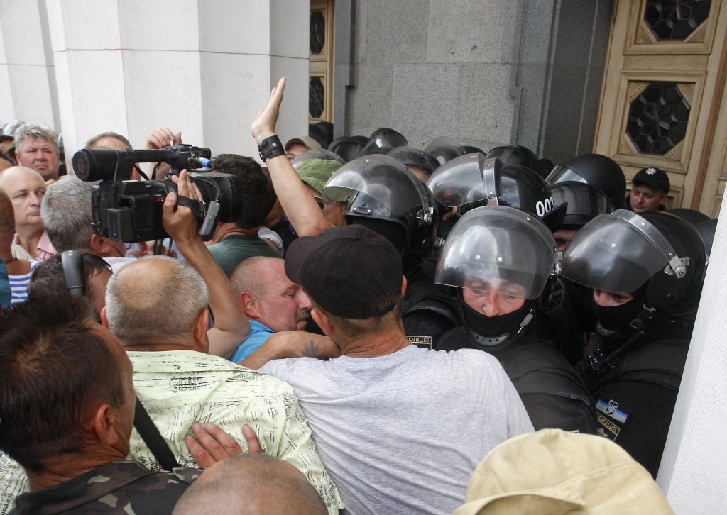 Περίπου χίλιοι διαδηλωτές, ανθρακωρύχοι, βετεράνοι του πολέμου του Αφγανιστάν αλλά και πρώην εργαζόμενοι στα σώματα ασφαλείας, που πραγματοποιούσαν συγκέντρωση έξω από το κτίριο της ουκρανικής Βουλής, επιχείρησαν να εισβάλουν στο κτίριο του κοινοβουλίου, με αποτέλεσμα να συγκρουστούν με τις δυνάμεις της αστυνομίας που προσπάθησαν να τους εμποδίσουν.