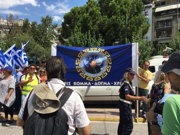 Έξω από τα δικαστήρια της πρώην σχολής Ευελπίδων έχουν συγκεντρωθεί οπαδοί του που έφτασαν από όλη την Ελλάδα με πούλμαν, κρατώντας ελληνικές σημαίες.