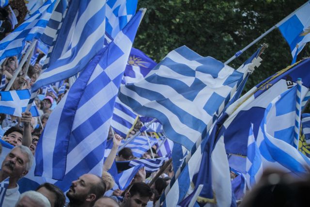 Εκατοντάδες άτομα εκφράζουν την αντίθεσή τους στην παραχώρηση του όρου «Μακεδονία» και φωνάζουν συνθήματα κατά της κυβέρνησης