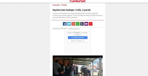 Συμπλοκή που είχε ως αποτέλεσμα να σκοτωθούν τρία άτομα σημειώθηκε κατά τη διάρκεια των διπλών στην Τουρκία. Έκλεισαν οι κάλπες στις 5 μ.μ.