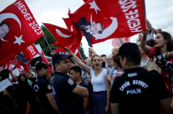 Οι οπαδοί μετά τη διαφαινόμενη μεγάλη νίκη ήδη έχουν ξεχυθεί στην Άγκυρα, όπου τα ποσοστά του φτάνουν το 54%. Την ίδια ώρα, στα τελικά αποτελέσματα της Κωνσταντινούπολης, ο Ερντογάν έφτασε το 51%.