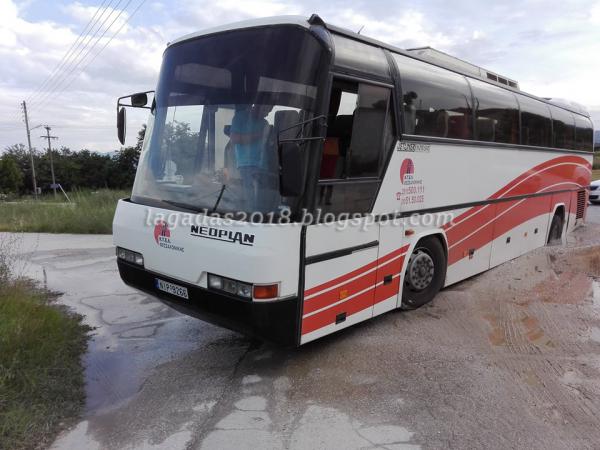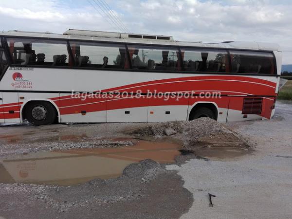 Σύμφωνα με το lagadas2018.blogspot.com, την ώρα που περνούσε το όχημα από το σημείο, ο δρόμος υπέστη καθίζηση με αποτέλεσμα να κολλήσει το ΚΤΕΛ.