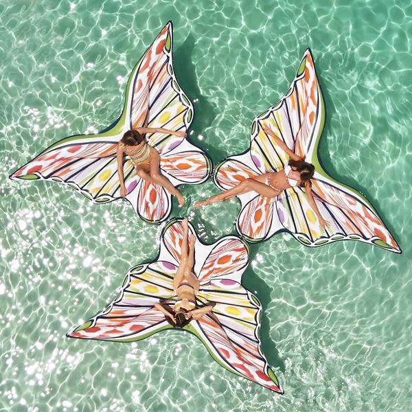 Αν νομίζετε πως για τις καλοκαιρινές σας διακοπές χρειάζεστε μόνο γυαλιά πολύχρωμα και μικροσκοπικά μπικίνι, προσθέστε στην λίστα σας και μια φουσκωτή πεταλούδα για την πισίνα ή την θάλασσα των διακοπών σας. Μετά την φρενίτιδα των ροζ φλαμίνγκο πέρυσι, φέτος είναι η σεζόν της πεταλούδας.
