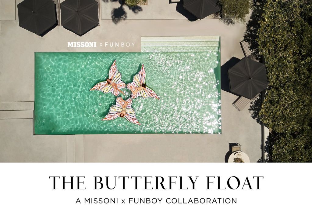 Ο οίκος Missoni, που λατρεύει το καλοκαίρι, αποφάσισε να κυκλοφορήσει μία σειρά από φουσκωτά είδη θαλάσσης, που θα λατρέψει ο φωτογραφικός φακός και οι μοδάτοι λουόμενοι. Το float «Missoni x Funboy Butterfly» φέρει το σχέδιο χρώματος της Missoni, το οποίο είναι ζωγραφισμένο σε κάθε πλευρά του πλωτήρα.