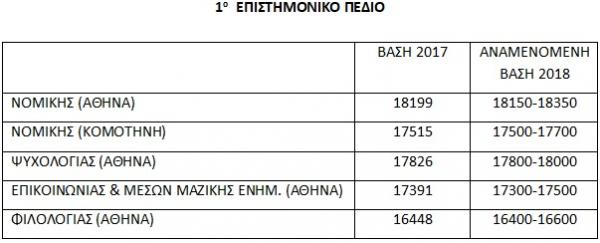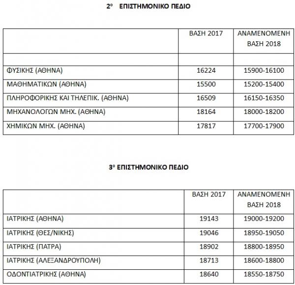 Σημαντική μείωση στις σχολές του 2ου επιστημονικού πεδίου στις υψηλόβαθμες σχολές, μικρότερη όμως στις μεσαίες και χαμηλές. Στο 3ο επιστημονικό πεδίο αναμένουμε πτώση μεγαλύτερη στις υψηλόβαθμες σχολές, ενώ στις μεσαίες θα σημειωθούν μικρές αυξομειώσεις.