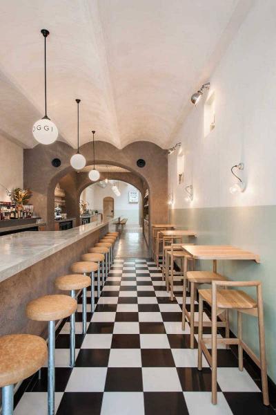 Η Osteria Oggi είναι ένα παράδειγμα ισχυρής αρχιτεκτονικής που επιτυγχάνεται με πολύ απλά μέσα. Οι αρχιτέκτονες το φυσικό φως που προέρχεται από την οροφή στο πίσω μέρος του εστιατορίου και αποφάσισαν πως η αίσθηση ανοιχτού χώρου είναι το δυνατό σημείο του εστιατορίου.