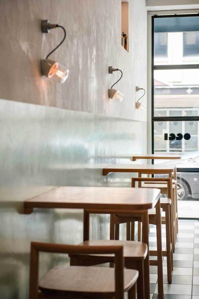 Οι ιταλικές πλατείες (piazza) χρησίμευσαν ως κύρια πηγή έμπνευσης για το εσωτερικό, που αντανακλάται με παστέλ αποχρώσεις που εφαρμόζονται στους τοίχους και άμμο, σαν πλακόστρωτα δάπεδα. Τα μινιμαλιστικά ξύλινα έπιπλα ταιριάζουν απόλυτα με ένα μακρύ, σκυρόδετο μπαρ με μαρμάρινο πάγκο.