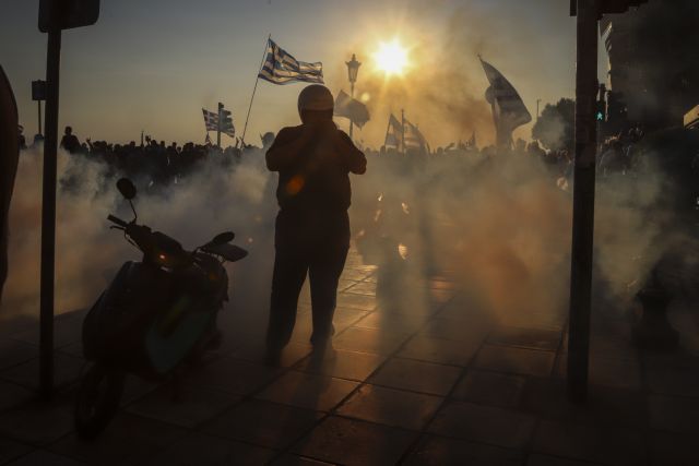 Ένταση στις πορείες διαμαρτυρίας για τη συμφωνία των Πρεσπών