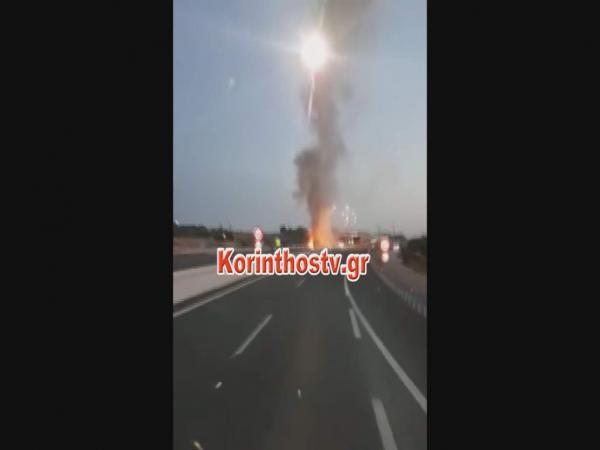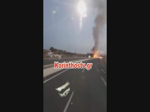 Στις φλόγες τυλίχτηκε τα ξημερώματα φορτηγό την ώρα που κινούνταν στην Εθνική Οδό Κορίνθου - Πατρών