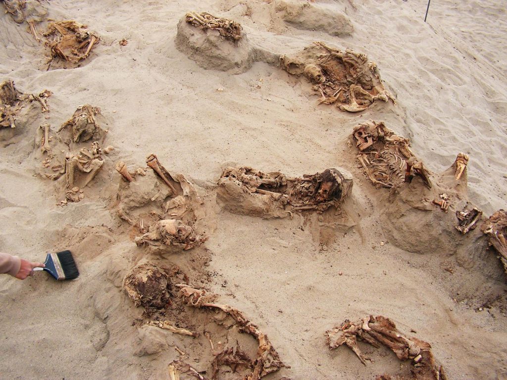 Τα παιδιά ήταν θαμμένα κατακόρυφα, το ένα δίπλα στο άλλο, με το καθένα να έχει κοντά ένα βάζο, μια σφυρίχτρα, κομμάτια υφάσματος κα τροφή. «Θυσιάστηκαν με μια τομή στο στέρνο και έχουν διαλυμένα πλευρά, όπως και στην άλλη περιοχή, στο Χουαντσακίτο, όπου εντοπίστηκαν τα πρώτα ευρήματα», υπογραμμίζει ο Γκαμπριέλ Πριέτο, αρχαιολόγος του εθνικού Πανεπιστημίου του Τρουχίγιο. Οι ειδικοί υποψιάζονται ότι τα πλευρά παραμερίστηκαν ίσως για να βγει ευκολότερα η καρδιά.
