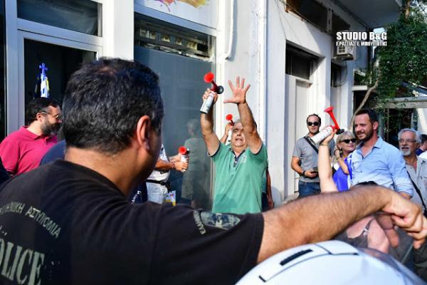 «Θύμα» αυτή τη φορά ο υφυπουργός Εργασίας, Τάσος Πετρόπουλος, κατά την επίσκεψή του στο Άργος.