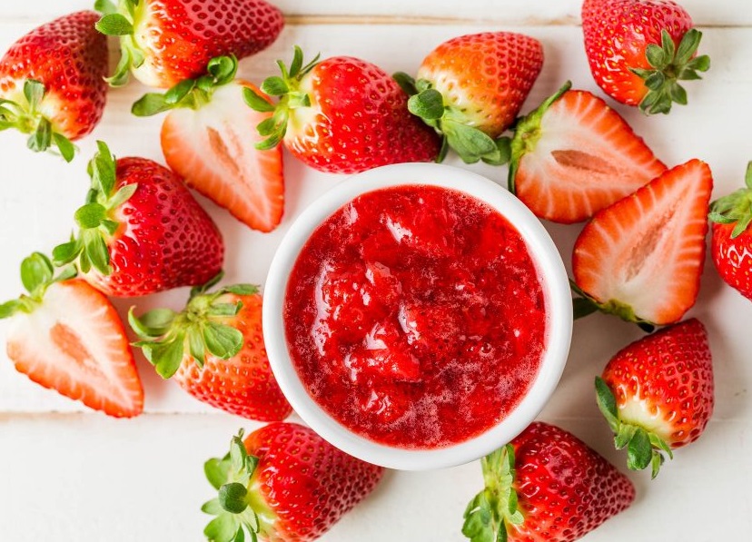 Σε μια κατσαρόλα μεσαίου μεγέθους ρίχνετε τις κομμένες φράουλες, τη ζάχαρη και το χυμό λεμονιού. Μαγειρεύετε σε μέτρια φωτιά, ανακατεύοντας περιστασιακά μέχρι οι φράουλες να απελευθερώσουν τον χυμό τους.