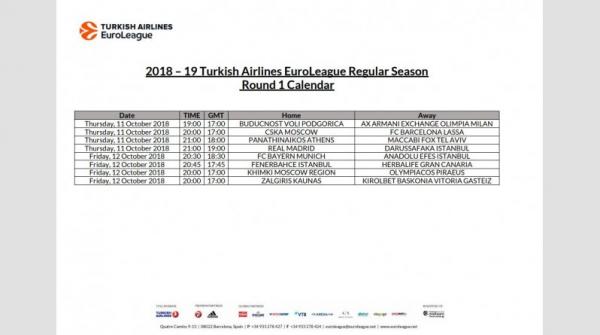 Γνωστό έκανε το πρόγραμμα της πρώτης αγωνιστικής της Ευρωλίγκας η διοργανώτρια αρχή.