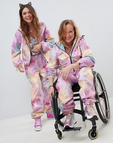 Η ASOS έχει δημιουργήσει ένα αδιάβροχο κοστούμι με αξεσουάρ για τους χρήστες αναπηρικών πολυθρόνων, πριν από την εποχή των μουσικών και καλλιτεχνικών φεστιβάλ. Έχει καταθέσει τη βοήθεια της δημοσιογράφου του δικτύου BBC και Παραολυμπιονίκη, Chloe Ball-Hopkins, 21 ετών, η οποία είναι και το πρόσωπο που φιγουράρει στην ιστοσελίδα με μια λαμπερή ολόσωμη φόρμα.