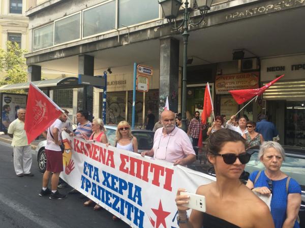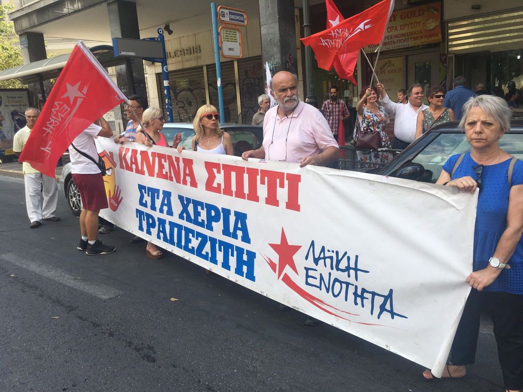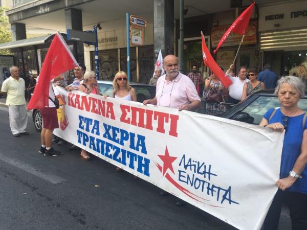 Συγκέντρωση πραγματοποίησαν για ακόμα μια Τετάρτη μέλη της Λαϊκής Ενότητας έξω από συμβολαιογραφικό γραφείο επί της οδού Σταδίου στο κέντρο της Αθήνας