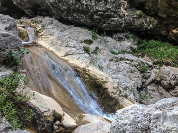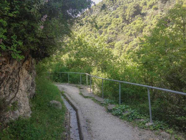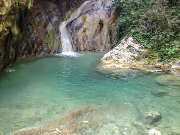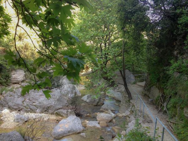 Η πυκνή βλάστηση, τα πλατάνια, τα τρεχούμενα νερά και οι λιμνούλες ανάμεσα στους βράχους συνθέτουν μιαόαση πρασίνου και δροσιάς.