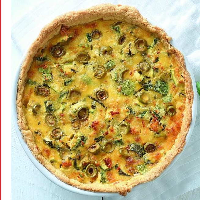 Γέμιση. Αλατίζουμε τα κολοκυθάκια και τα αφήνουμε σε σουρωτήρι για 10 λεπτά, να βγάλουν τα υγρά τους. Σε ένα μπολ ανακατεύουμε την κρέμα γάλακτος με τους κρόκους. Προσθέτουμε τη μισή γραβιέρα, τα κολοκυθάκια, τις ελιές και τον βασιλικό και αλατοπιπερώνουμε.