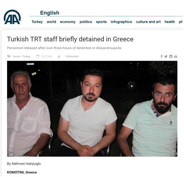 Για σύλληψη τούρκων δημοσιογράφων στην Αλεξανδρούπολη κάνει λόγο το Anadolu