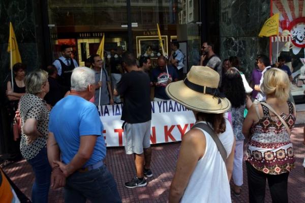 Συγκέντρωση διαμαρτυρίας μπροστά σε πολυκαταστήματα πραγματοποιούνται σε Αθήνα και Θεσσαλονίκη στο πλαίσιο της απεργίας που προκηρύχθηκε λόγω του ανοίγματος των καταστημάτων, σήμερα, Κυριακή.