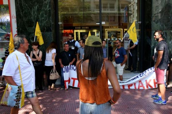 Συγκέντρωση διαμαρτυρίας μπροστά σε πολυκαταστήματα πραγματοποιούνται σε Αθήνα και Θεσσαλονίκη στο πλαίσιο της απεργίας που προκηρύχθηκε λόγω του ανοίγματος των καταστημάτων, σήμερα, Κυριακή