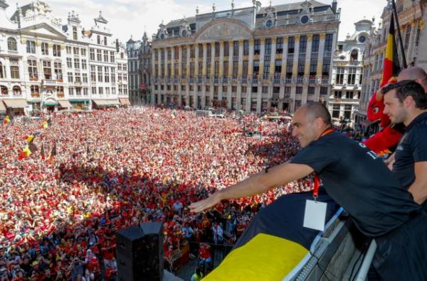 Η αποστολή μετέβη με ανοιχτό λεωφορείο από το αεροδρόμιο των Βρυξελλών στην κεντρική πλατεία της πόλης, ενώ φίλαθλοι βρίσκονταν κατά μήκος της διαδρομής, μερικοί εκ των οποίων ανεβασμένοι σε οδικές πινακίδες και φωτεινούς σηματοδότες, προκειμένου να έχουν καλύτερη οπτική επαφή με τους παίκτες.