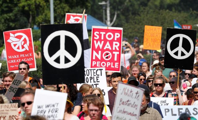 Πολλές χιλιάδες άνθρωποι διαδήλωσαν σήμερα στο Ελσίνκι, την παραμονή της ιστορικής συνόδου κορυφής μεταξύ των προέδρων των ΗΠΑ και της Ρωσίας, Ντόναλντ Τραμπ και Βλαντιμίρ Πούτιν, στη φινλανδική πρωτεύουσα.