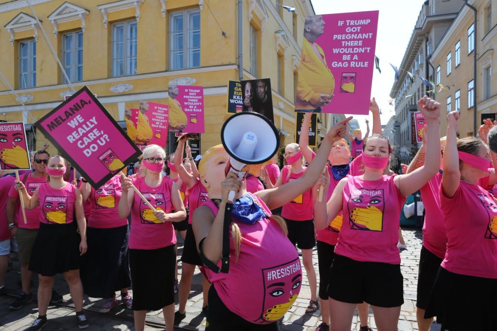 Ήταν μια από τις πιο ασυνήθιστες και ευφάνταστες διαδηλώσεις εναντίον της πολιτικής του αμερικανού προέδρου Ντόναλντ Τραμπ: πολλές δεκάδες «έγκυες Τραμπ», ντυμένες στα ροζ, συγκεντρώθηκαν στο κέντρο του Ελσίνκι, για να διαμαρτυρηθούν για την πολιτική της αμερικανικής κυβέρνησης στο θέμα των αμβλώσεων.