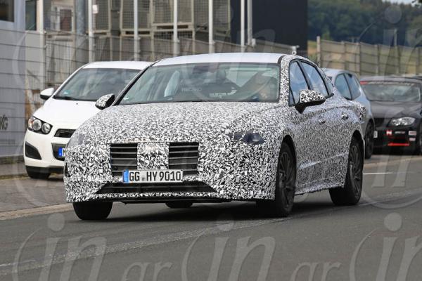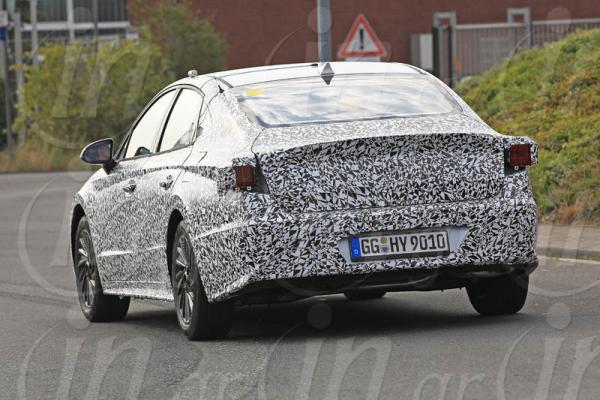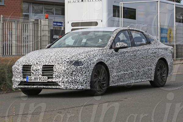 Η πρώτη εμφάνιση του μεσαίου τετράθυρου μοντέλου της Hyundai ως καμουφλαρισμένου δοκιμαστικού πρωτοτύπου στην τελική του μορφή προδίδει την σαφώς κομψότερη σχεδιαστική του υπόσταση.