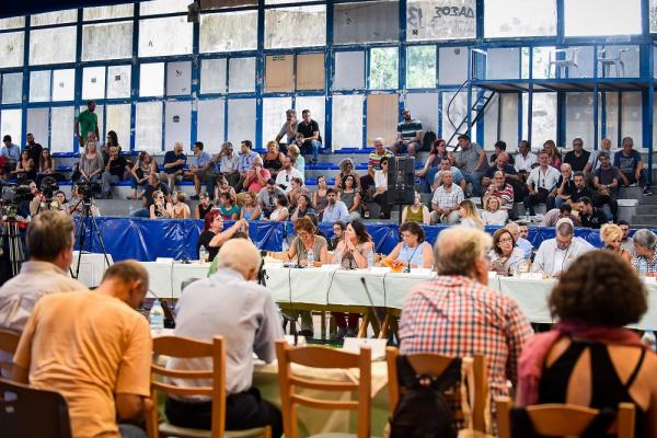 Η συνεδρίαση ήταν από την αρχή, λόγω του θέματος, εκρηκτική. Δεν ήταν πάντως πολύ καλή ιδέα να ξεκινήσει αυτή η μάζωξη ντάλα μεσημέρι με πολύ υψηλή θερμοκρασία, σε μια αίθουσα καλυμμένη με λαμαρίνες. Πολλοί, ομιλητές αλλά και δημότες που είχαν έρθει να παρακολουθήσουν, δεν άντεξαν και σιγά σιγά έφευγαν. Απουσίαζαν αν και είχαν κληθεί, οι εκπρόσωποι του ΟΚΑΝΑ, του ΚΕΘΕΑ και του ΚΕΕΛΠΝΟ.