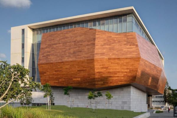 Μια διογκωμένη, ανυψωμένη δομή ξυλείας «περιτυλίγει» τους εκθεσιακούς χώρους του Μουσείου Φυσικής Ιστορίας Steinhardt στο Τελ Αβίβ, που ολοκληρώθηκε από το ισραηλινό στούντιο Kimmel Eshkolot Architects. Ανοιχτό από την περασμένη εβδομάδα, το νέο μουσείο γίνεται εθνικό κέντρο του Ισραήλ για μελέτες βιοποικιλότητας. Περιέχει κοινόχρηστο ερευνητικό χώρο για τις συλλογές φυσικής ιστορίας του Πανεπιστημίου του Τελ Αβίβ, καθώς και ερευνητικά εργαστήρια για χρήση από τους επιστήμονες του μουσείου.