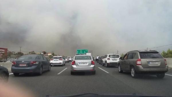 Πληροφορίες αναφέρουν πως έχει σχηματιστεί ουρά χιλιομέτρων από αυτοκίνητα που δεν μπορούν, τα οποία δεν μπορούν να διανύσουν απόσταση 17 χιλιομέτρων λόγω της πυρκαγιάς.