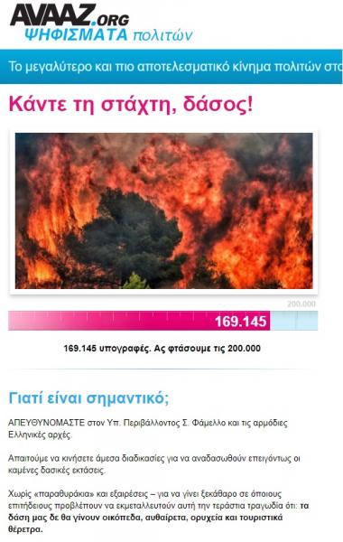 Οι υπογραφές θα παραδοθούν στον αναπ. υπουργό Περιβάλλοντος, Σ. Φάμελλο –ο οποίος είπε πως είναι συνταγματική υποχρέωση να κηρυχθεί αναδασωτέα η καμένη περιοχή– και τις Ελληνικές αρχές, μέσα στις επόμενες μέρες, με το αίτημα: