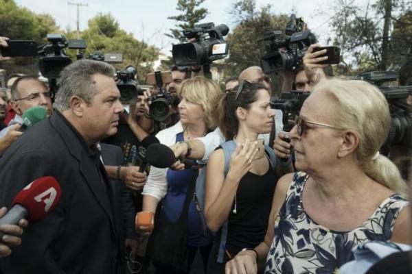 Οργή λαού στο Μάτι κατά του υπουργού Άμυνας Πάνου Καμμένου, ο οποίος επισκέφτηκε μετά από δύο ημέρες τις πληγείσες περιοχές.