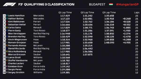 Από τη δεύτερη θέση θα εκκινήσει ο έτερος οδηγός της Mercedes, Βάλτερι Μπότας, ενώ ακολουθούν οι δύο Ferrari των Ραϊκόνεν και Φέτελ.