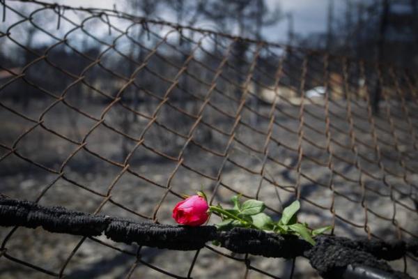 Μάτι: Μηνύματα και λουλούδια στη μνήμη των θυμάτων