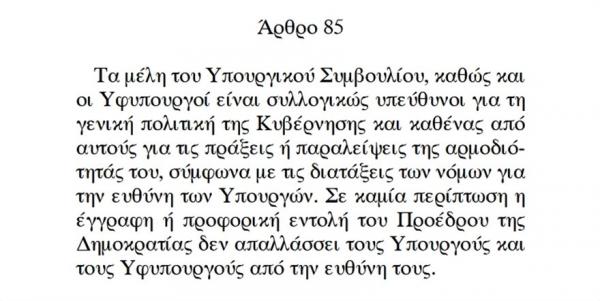 Η μελέτη «περί πολιτικής ευθύνης» του Δημήτρη Τσάτσου είναι του έτους 1993 και στη σελίδα 309 ο συνταγματολόγος γράφει ότι η ομολογία πολιτικής ευθύνης συνολικά της Κυβέρνησης «συνεπάγεται, την πτώση, την παραίτηση της Κυβέρνησης».