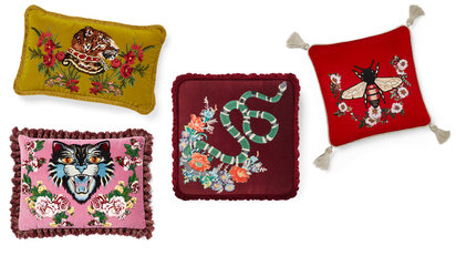 Η νέα γραφική διακόσμηση Gucci διαθέτει τα δημοφιλή μοτίβα του δημιουργικού σκηνοθέτη Alessandro Michele και είναι διαθέσιμη για να αγοράσει κανείς online τώρα. Οι επιλογές περιλαμβάνουν ακριβές πορσελάνες και κεριά που παράγονται από την καθιερωμένη από το 18ο αιώνα εταιρεία Richard Ginori, καθώς και χαρακτηριστικά φτερά, μοτίβα πάνθηρα και μελισσοκόμους μαλακά μαξιλάρια και εντυπωσιακές ταπετσαρίες.