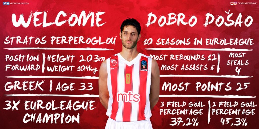 Nekadašnji grčki reprezentativac, trostruki osvajač Evrolige, Stratos Perperoglu, novi je igrač Crvene zvezde mts! https://t.co/GQXUkqxeKW