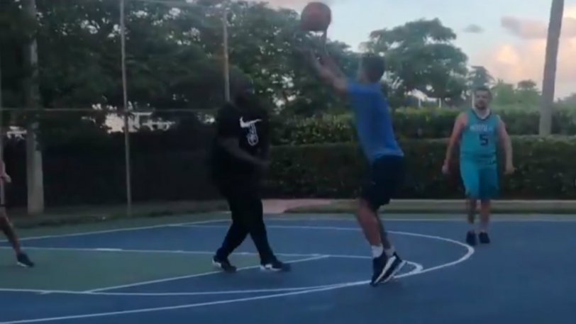 Έτσι, αποφάσισε να κάνει και μία επίδειξη των δυνατοτήτων του με την πορτοκαλί μπάλα. Δημοσίευσε λοιπόν ένα βίντεο στους προσωπικούς του λογαριασμούς σε twitter και instagram στο οποίο παίζει μπάσκετ με φίλους και δοκιμάζει ένα σουτ τριών πόντων αφήνοντας άπαντες έκπληκτους!