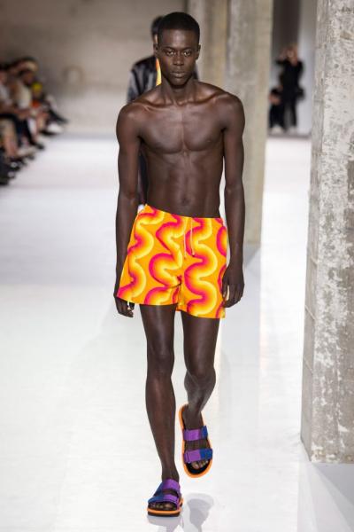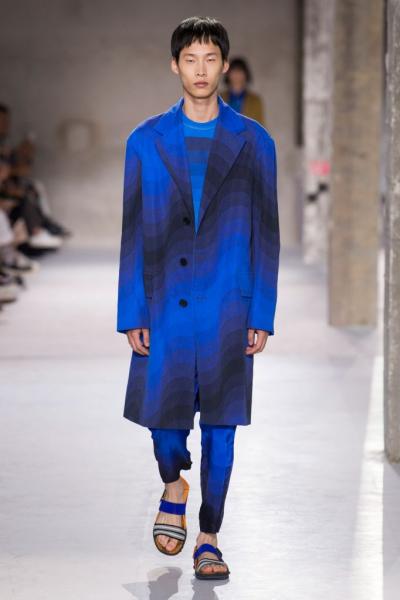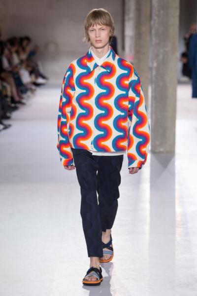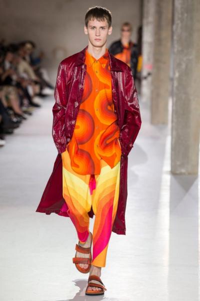 Οι αναδρομικές, τρισδιάστατες εκτυπώσεις των 60s, χρωματισμένες σε μια σειρά φωτεινών χρωμάτων, όπως τα μπλε, τα πορτοκάλι και τα κόκκινα, χρησιμοποιούνται για τη δημιουργία πουκάμισων, παντελονιών, σορτς και παλτών σε μια προσπάθεια να δημιουργηθεί μια νέα σύλληψη ανδρικών ενδυμάτων.