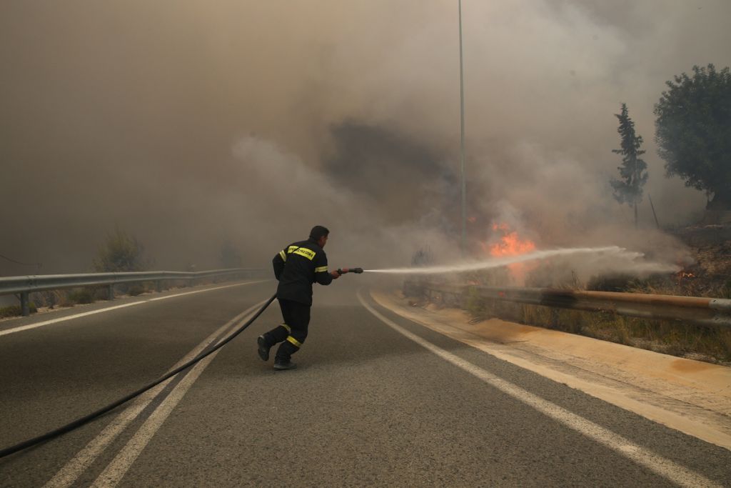 Για την κατάσβεσή της επιχειρούν οκτώ πυροσβέστες με τέσσερα οχήματα και δύο πυροσβεστικά αεροσκάφη.