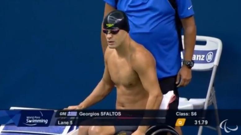 Σημειώνοντας χρόνο 31.67 ο Σφαλτός βγήκε δεύτερος στον αγώνα της κατηγορίας S6, ενώ στον πρωινό προκριματικό ήταν πρώτος στην 2η σειρά με 31.79.