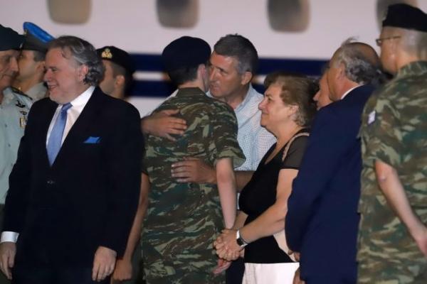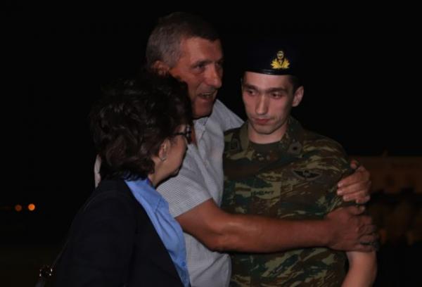 Ντυμένοι με τις στολές τους, οι δύο έλληνες στρατιωτικοί έφτασαν στις 3.40 τα ξημερώματα στο αεροδρόμιο Μακεδονία, κατέβηκαν από το πρωθυπουργικό αεροσκάφος και έτρεξαν συγκινημένοι στους γονείς τους που πέρασαν τον δικό τους «γολγοθά» τις προηγούμενες 167 ημέρες.