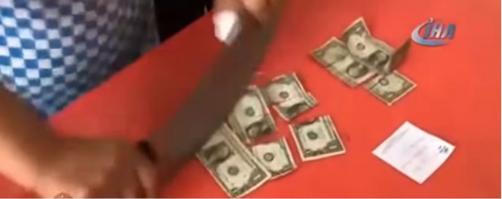 Σε βίντεο αναρτήθηκαν στα social media απεικονίζουν Τούρκους πολίτες να βάζουν φωτιά και να καίνε αμερικανικά δολάρια, ενώ σε άλλο βίντεο, άντρας με… χατζάρα κομματιάζει με μανία δεκάδες δολάρια.