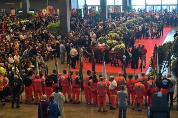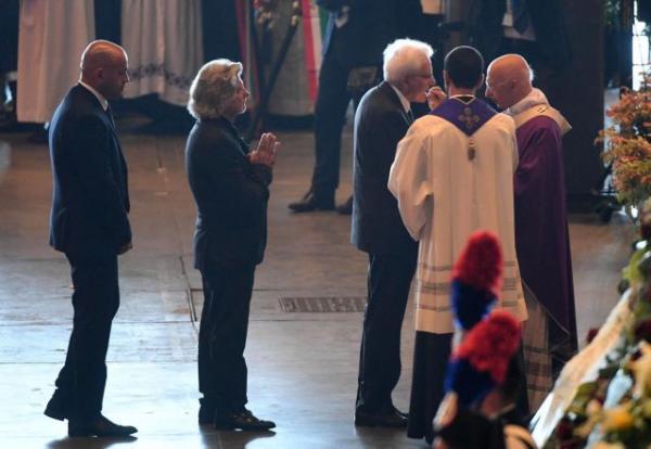 Κατά την άφιξή του, ο πρόεδρος Σέρτζιο Ματαρέλα χειροκροτήθηκε από τους πολίτες και θέλησε να συνομιλήσει και να συμπαρασταθεί σε όλους τους συγγενείς των θυμάτων.