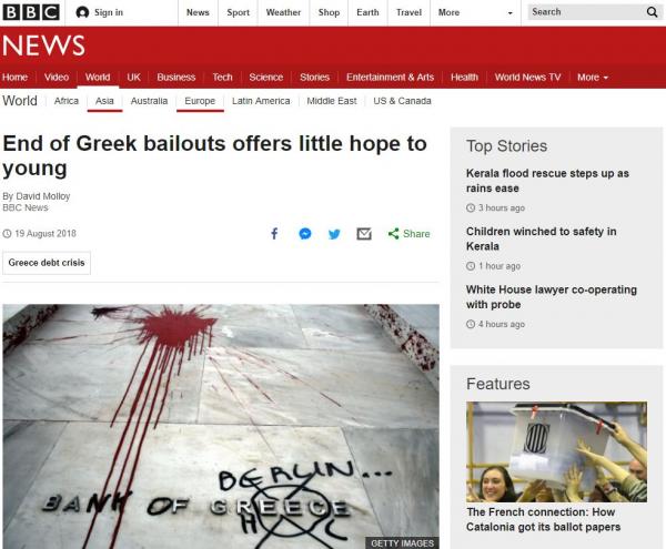 Σε δημοσίευμά του, αυτή τη φορά το BBC, αναφέρεται στις επιπτώσεις στη ζωή των νέων Ελλήνων και «στη ζημιά που έχει ήδη γίνει», υπενθυμίζοντας πρόσφατη δημοσκόπηση σύμφωνα με την οποία τρεις στους τέσσερις υποστηρίζουν αφενός ότι η χώρα έχει λάθος κατεύθυνση και αφετέρου ότι τα Μνημόνια αντί να σώσουν την Ελλάδα της προκάλεσαν κακό.