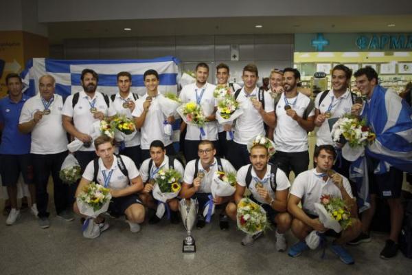 Από την Ουγγαρία και το Σομπατέλι, όπου ανέβηκαν στην κορυφή του κόσμου, με νίκη 9-8 επί της Ισπανίας στον τελικό της Κυριακής (19/8), οι «χρυσοί» έφηβοι αφίχθησαν στο «Ελευθέριος Βενιζέλος» στις 13:35 τη Δευτέρα (20/8) με την πτήση 801 της Austrian Airlines, μέσω Βιέννης.