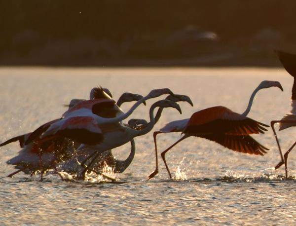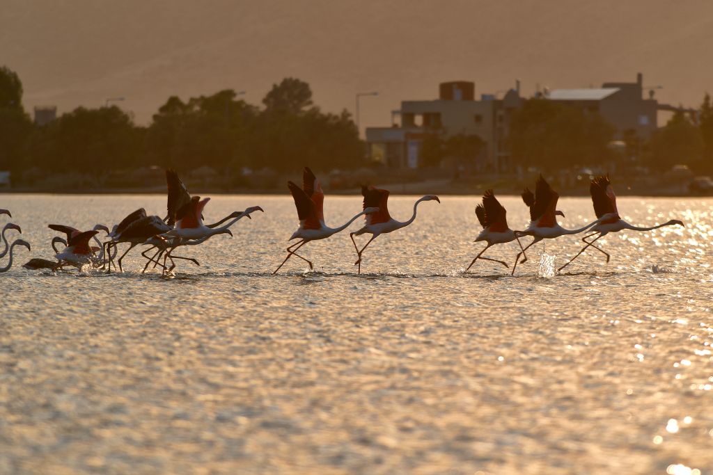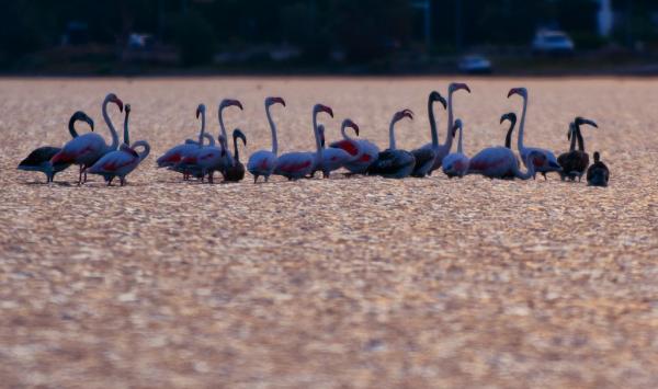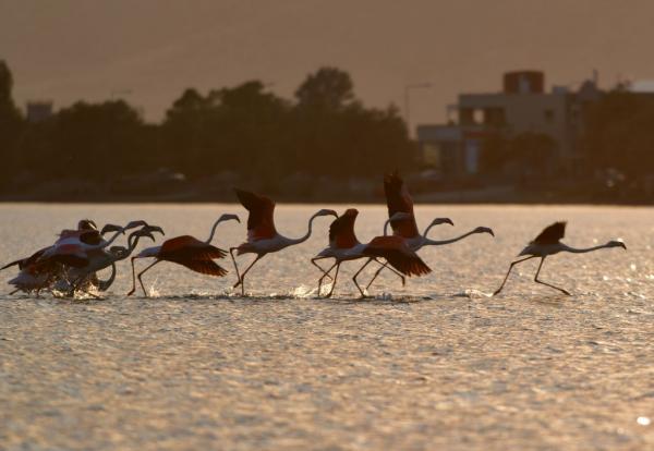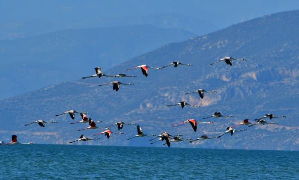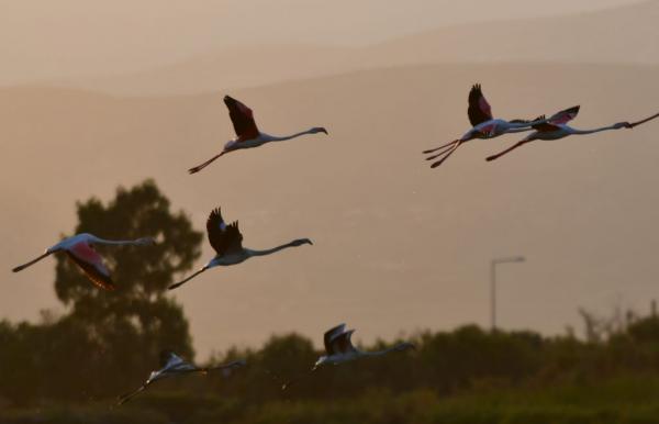 Τα φλαμίνγκο βρίσκονται στην φθινοπωρινή μετανάστευση των πτηνών και καθημερινά διανύουν χιλιάδες χιλιόμετρα μετακινώντας από περιοχή σε περιοχή.