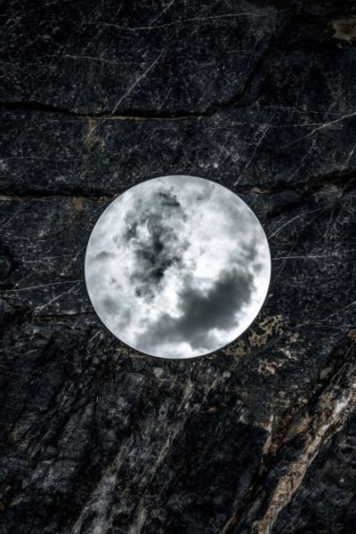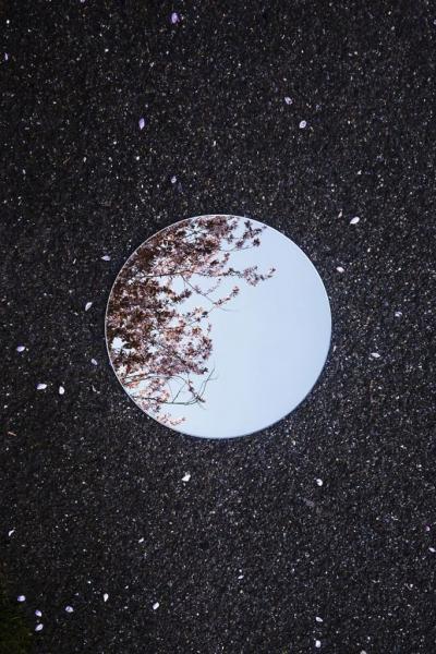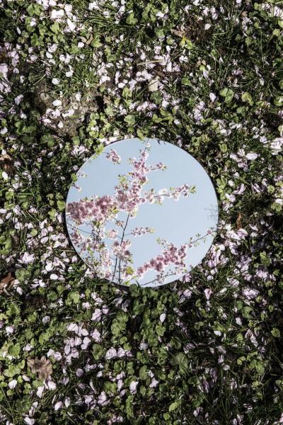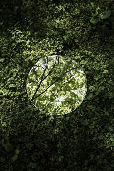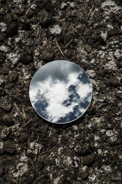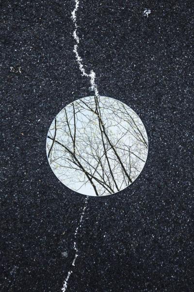 Οι προβληματισμοί είναι μια παρούσα δέσμευση, κατά την οποία φωτογραφίζει έναν σφαιρικό καθρέφτη σε πολλές τοποθεσίες.